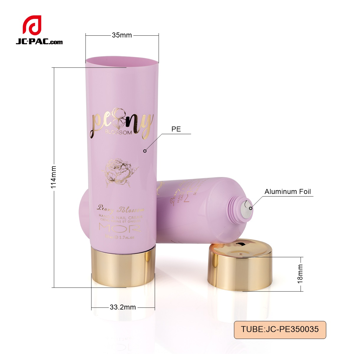 35mm Diameter Hand & Nail Cream Tube Packaging Set Soft Cosmetics Tube 50ml 1.7 fl.oz with Gold Metalized Cap